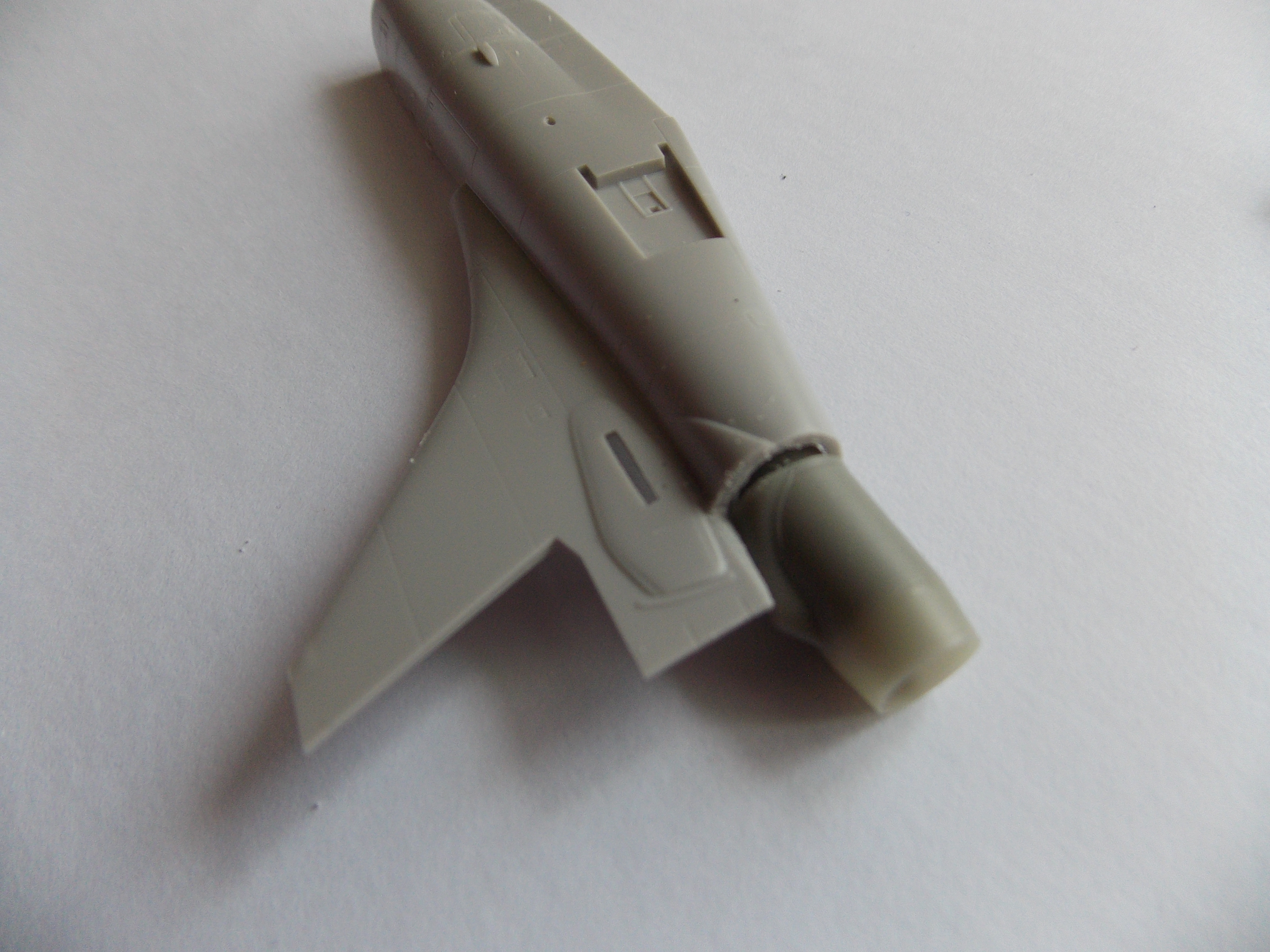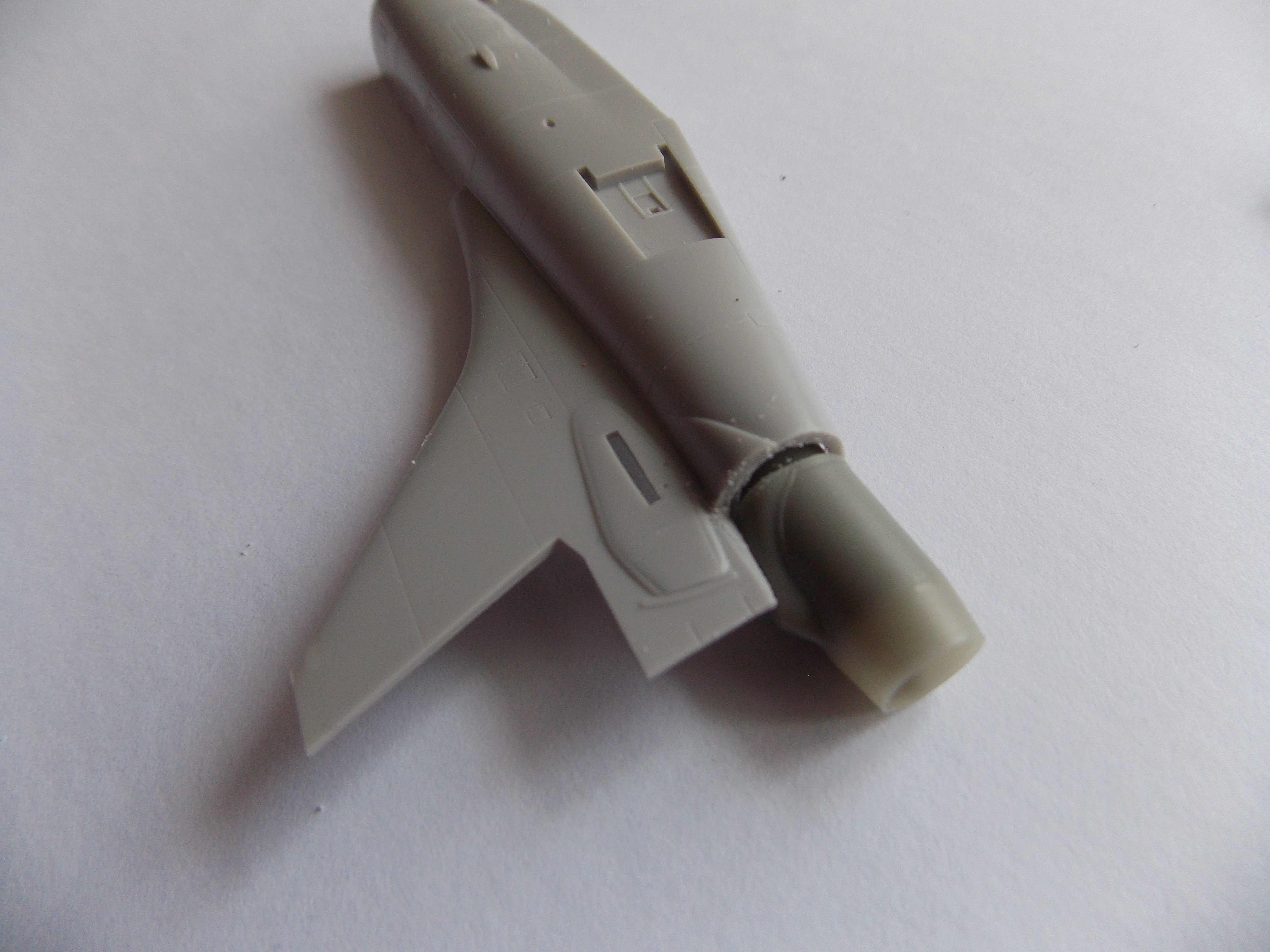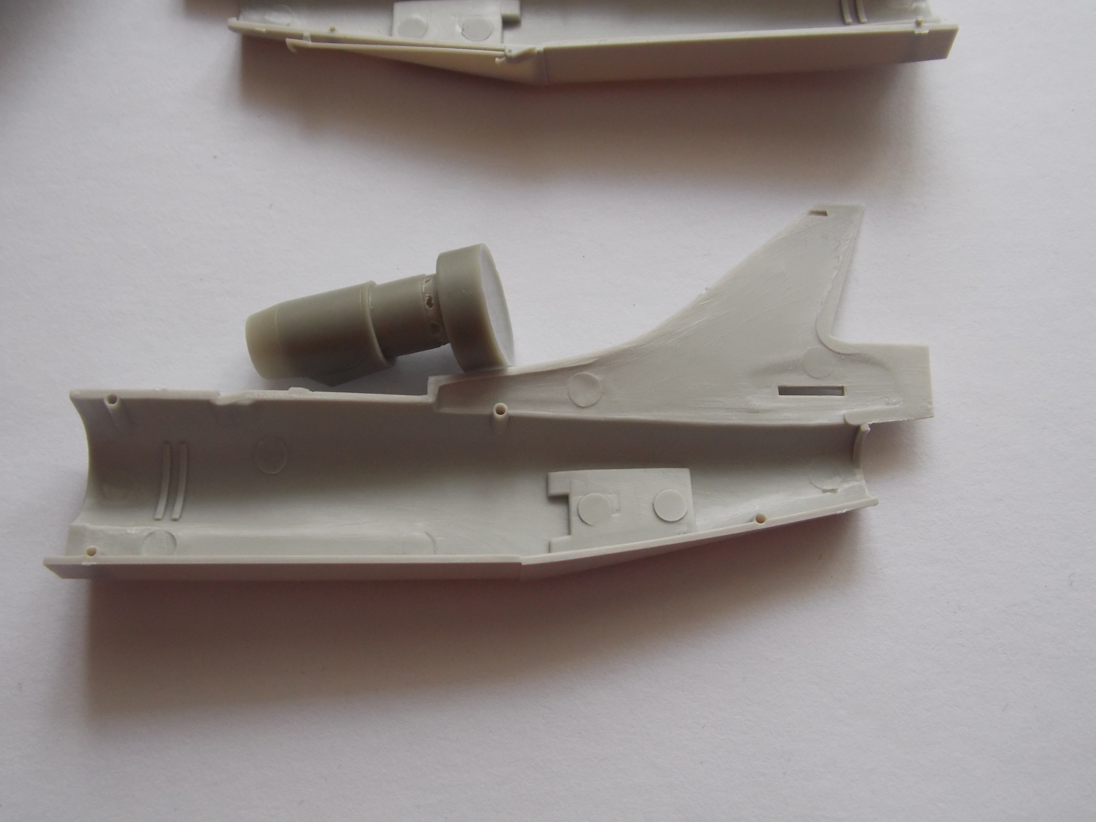 Trup stavebnice jsem zbavil konců výtokové trysky, jak nám doporučuje návod a s nadšením chtěl do trupu vložit trysku. Zvyklý z řady Quickboost mě nenapadlo, že i tak jednoduchý díl nebude pasovat.