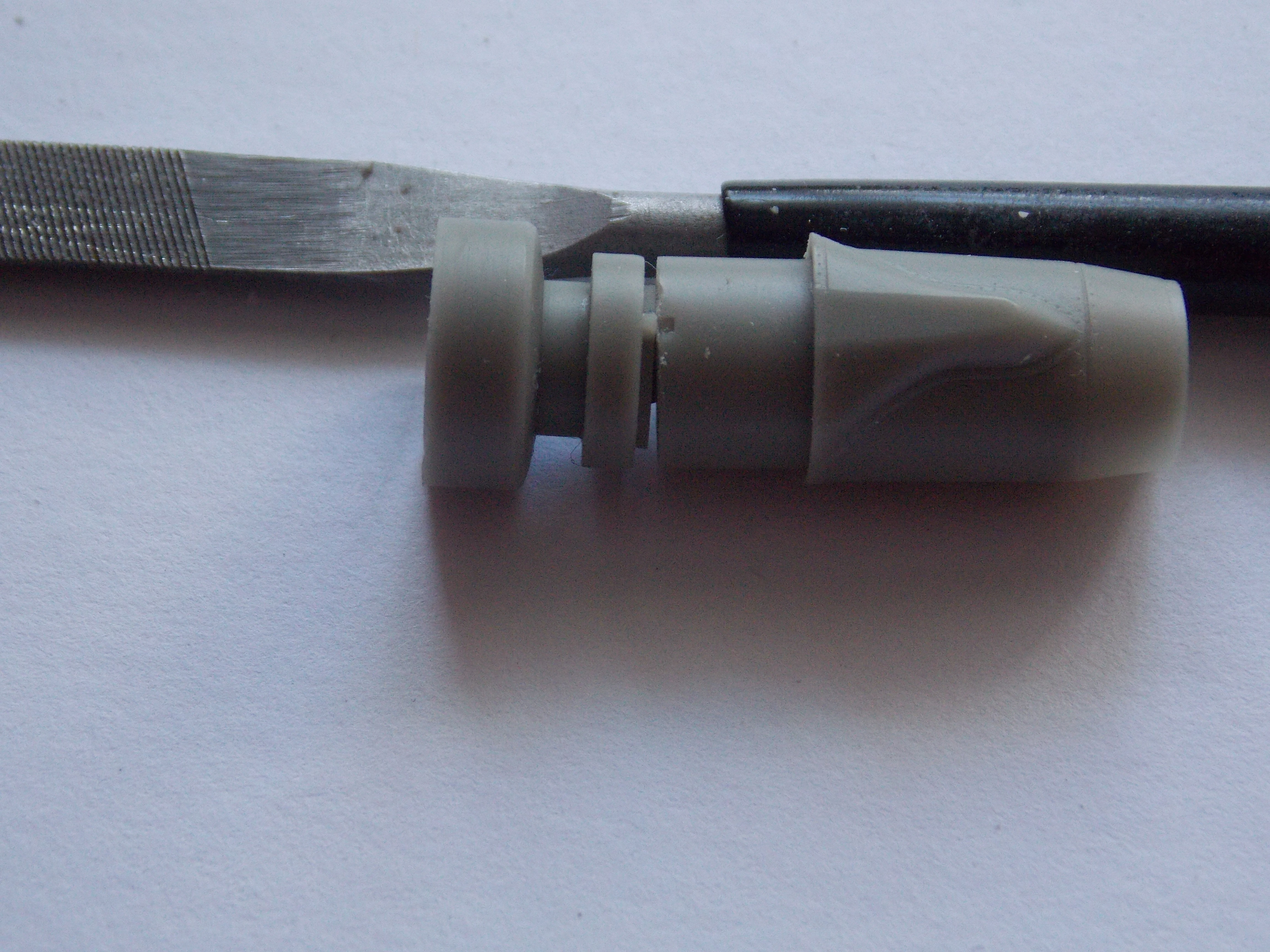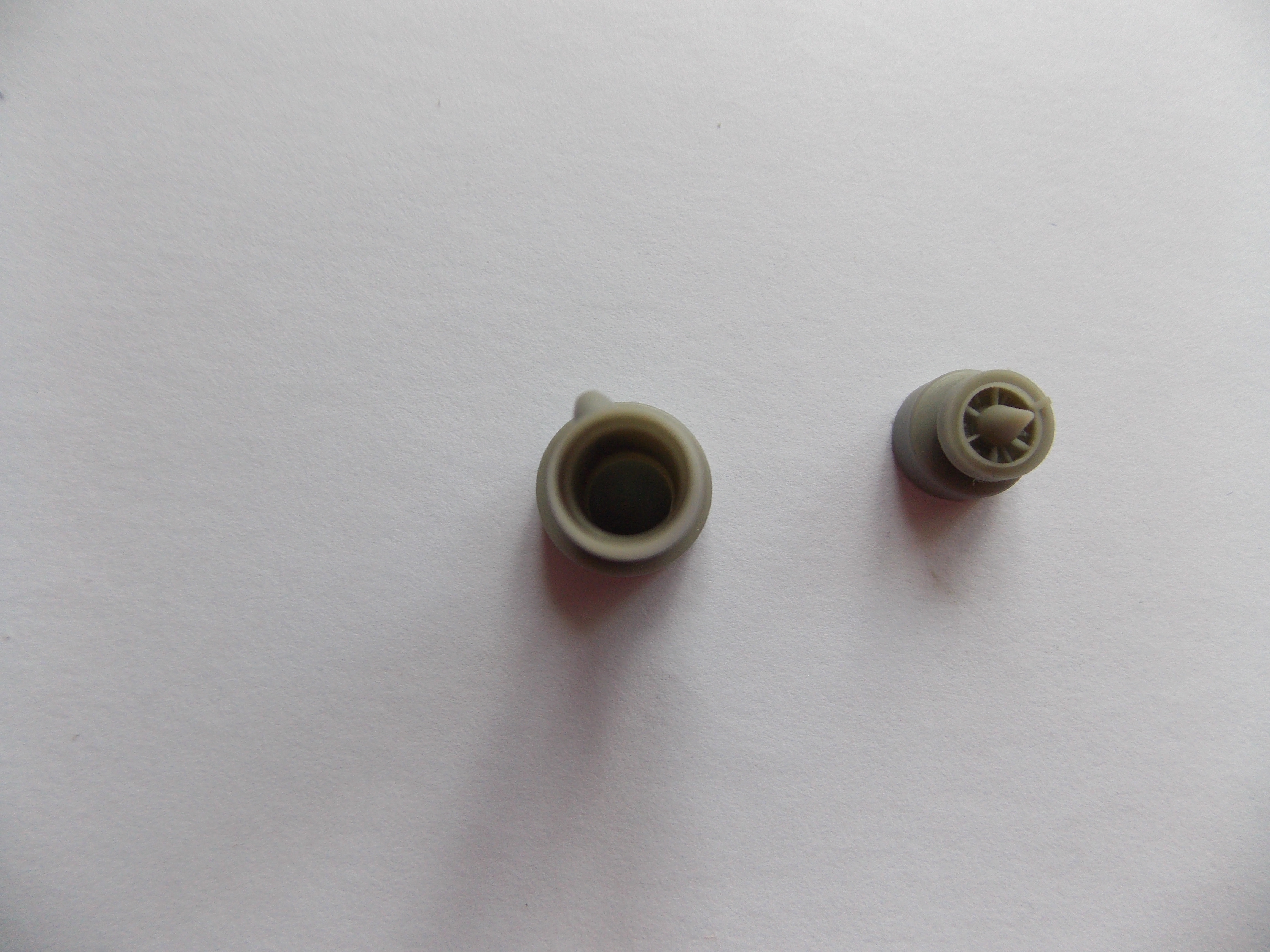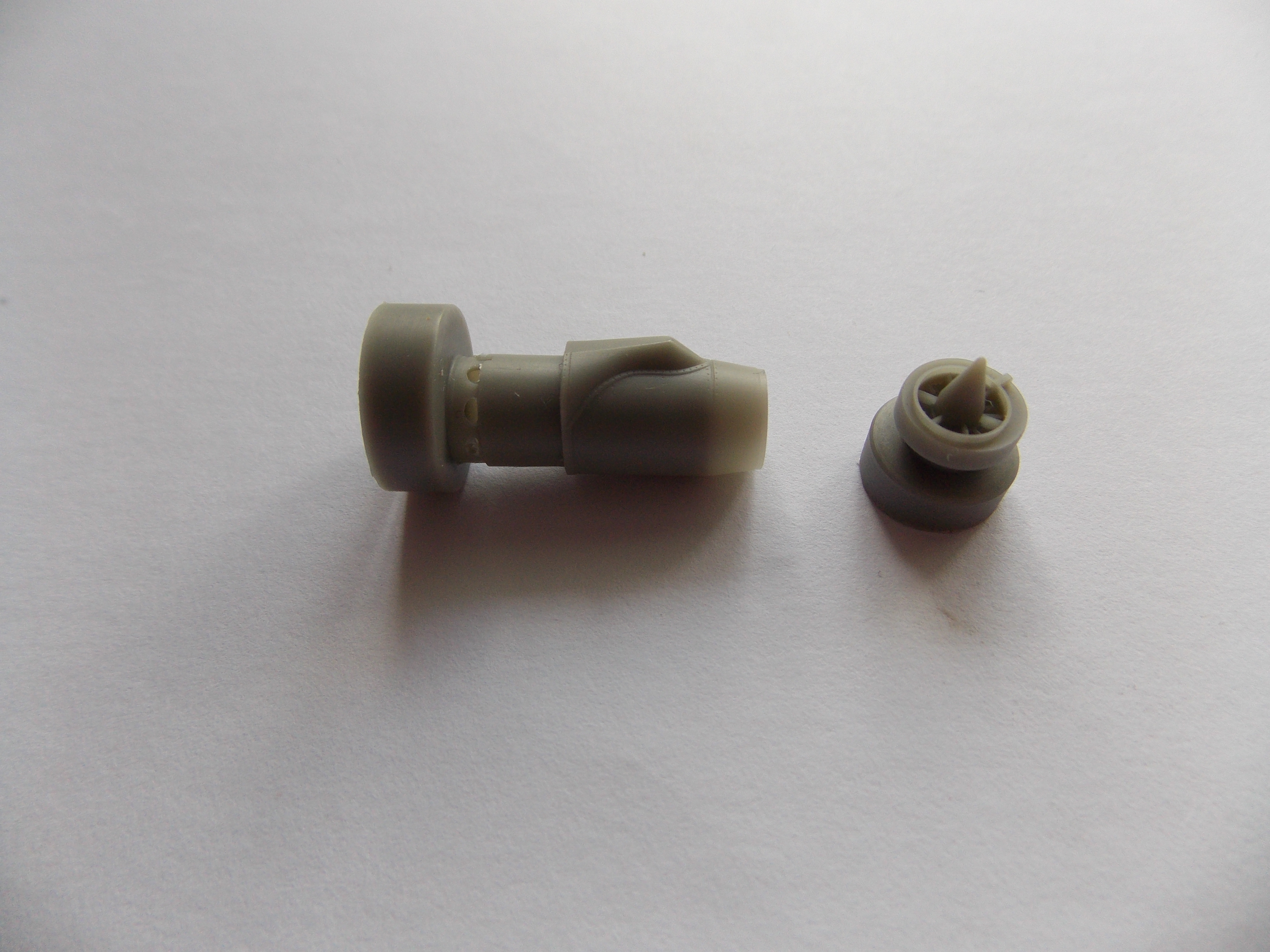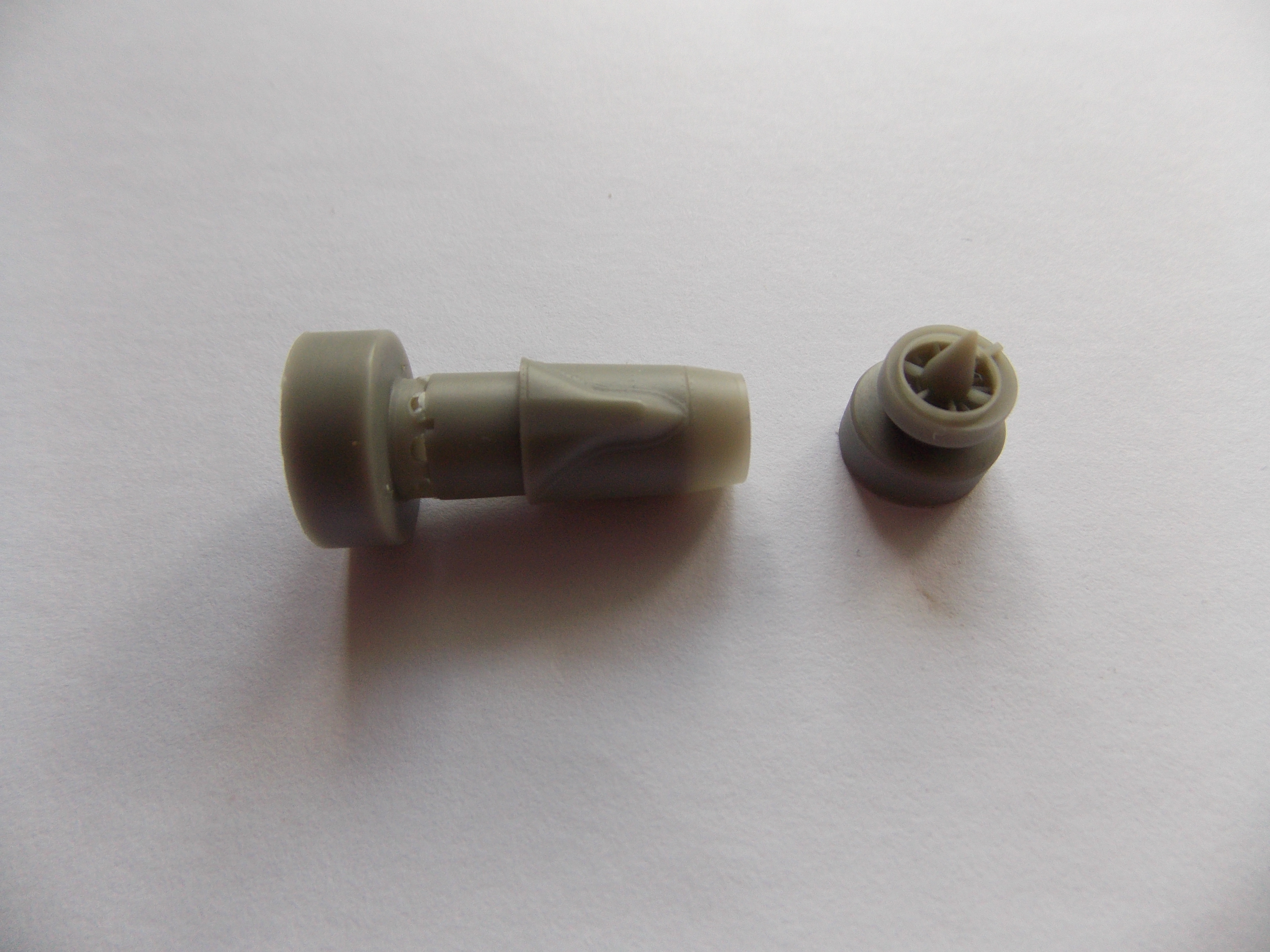 Dle návodu jsem odřezal nálitky, připasoval k sobě a objevil první zádrhel. Tryska má pro správnou polohu k motoru na sobě vybrání, které bohužel nepasuje zub u motoru. Tento problém jde lehce odstranit použitím skalpelu a zvětšení vybrání. Zde tedy hotovo.