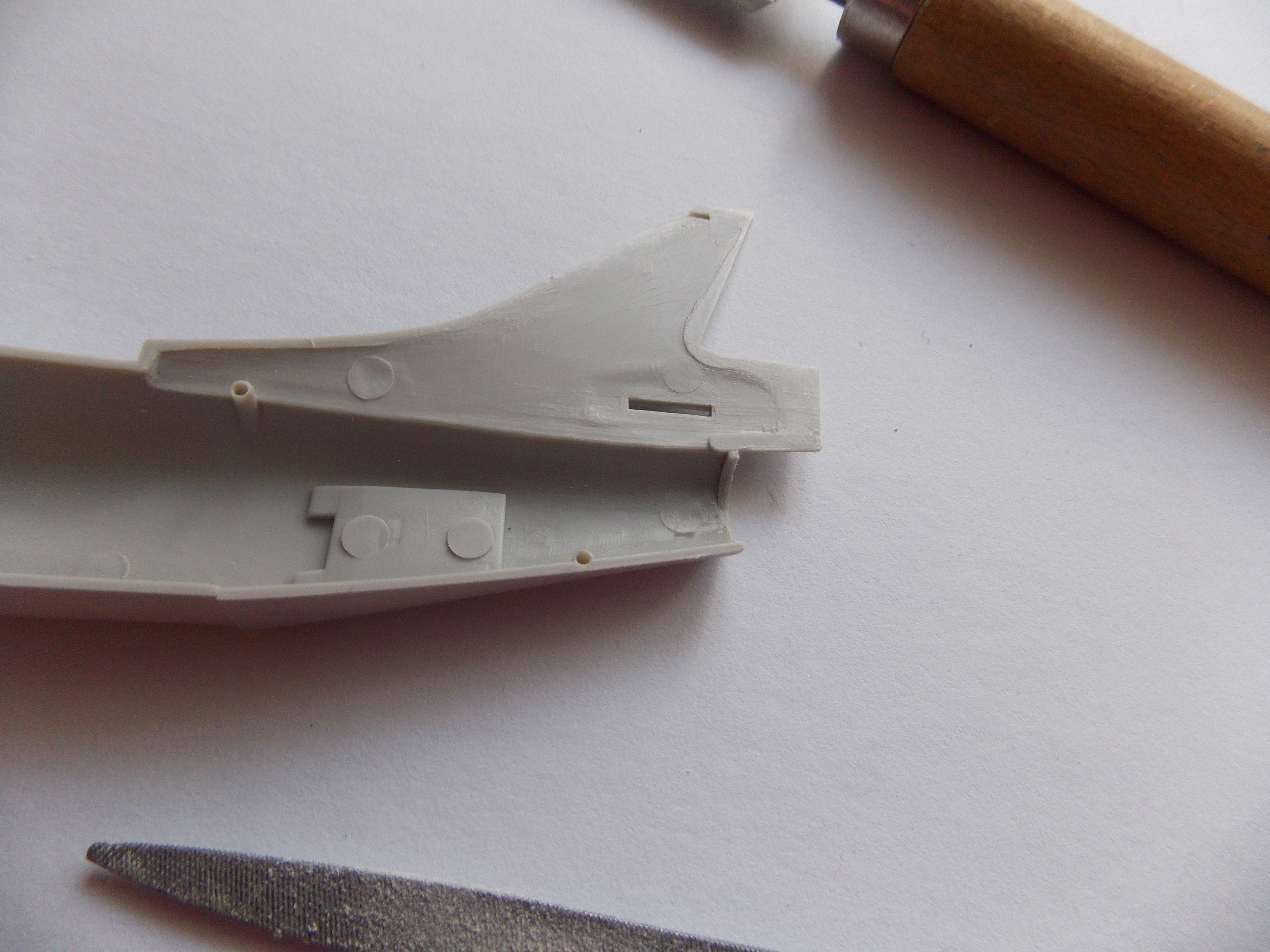 Slepil jsem tedy k sobě obě půlky trupu, vzal smirek, brousek a skalpel a začal obrušovat vnitřní stěny trupu.