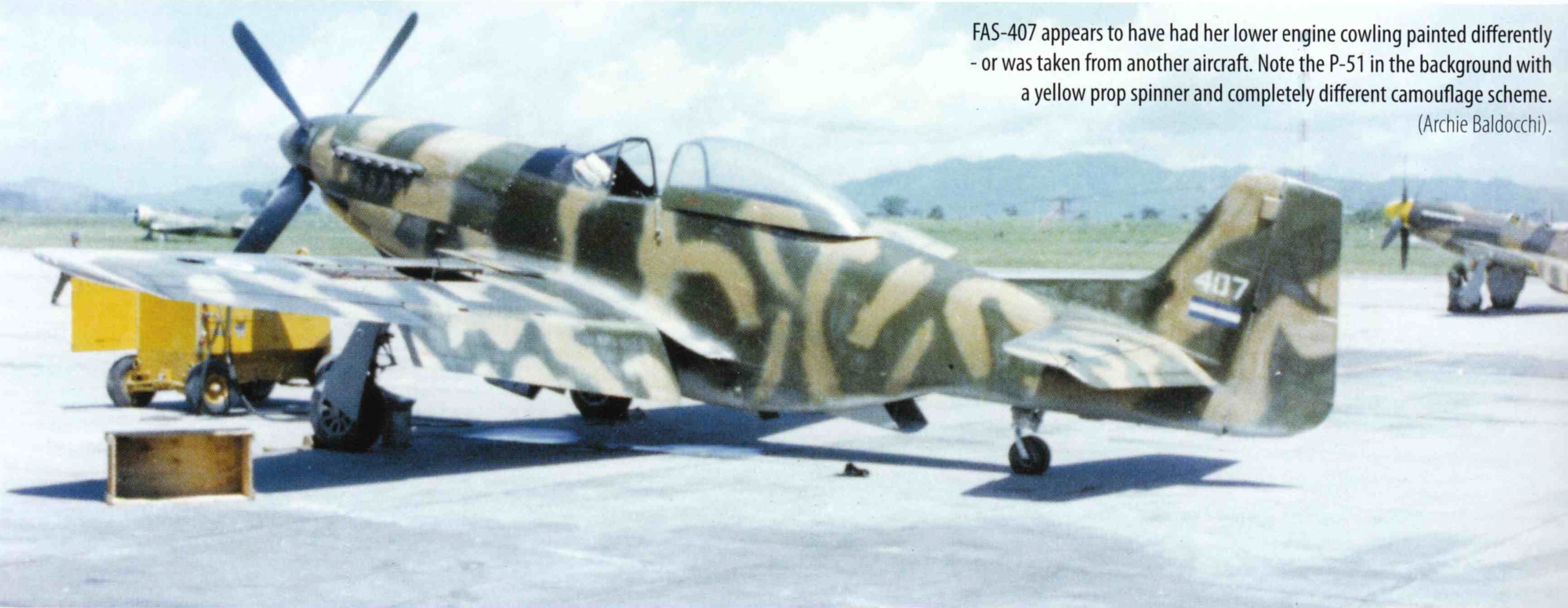 - P-51D-25-NA Mustang, No 407 (s/n 44-73973), El Salvador Air Force, Escuadrón de Caza y Bombardeo, Ilopango AB, 1969.