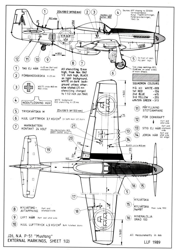 - P-51D-20-NA Mustang, No 26020, 44-63992, Swedish Air Force, Flygflottilj F16, Uppsala AB, early 1950s.