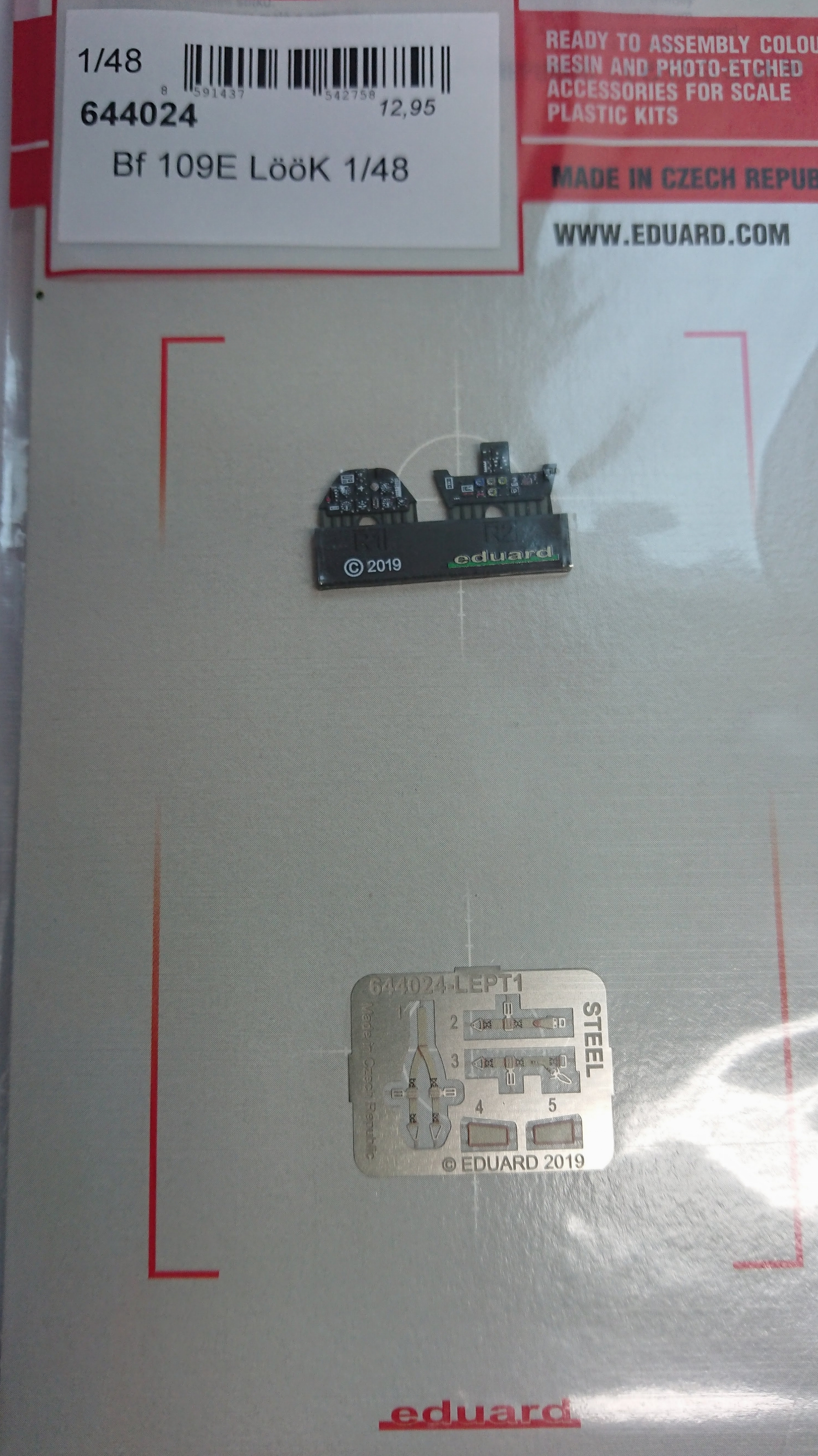 Sadu LööK som použil na stavebnicu Bf 109 E1 1/48 od Eduardu. Je to alternatíva za prístrojové dosky z leptov, ale kvalitatívne na vyššej úrovni a rozhodne povýši model o nejaký stupník vyššie.