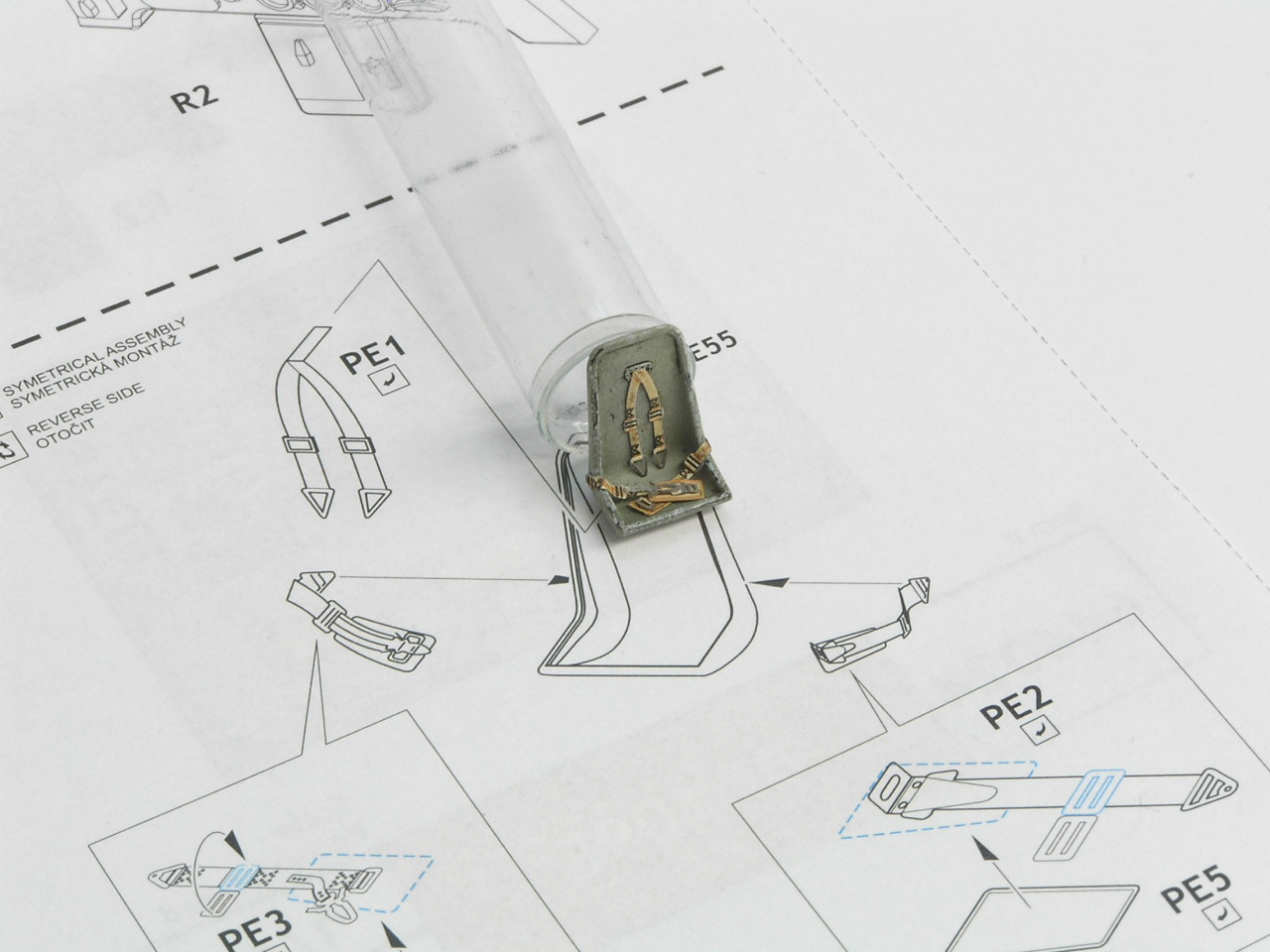 Bol som prekvapený kvalitou a detailnosťou prevedenia. Po oddelení od rámiku som začistil spoj a vyskúšal na modeli. Farba plastu zodpovedá farebnému prevedeniu prístrojovej dosky a začistený spoj nie je nutné dofarbovať.