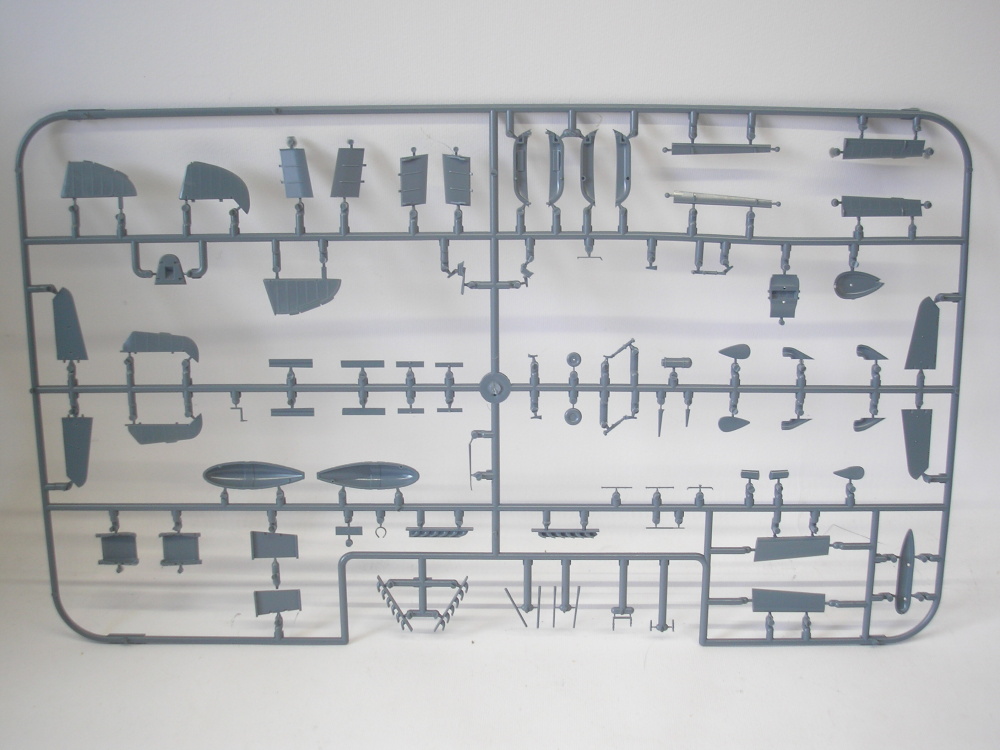 Ve čtyřech rámečcích ze světle šedého plastu nalezneme cca. 203 dílů, v rámečku z čirého plastu 10 dílů.