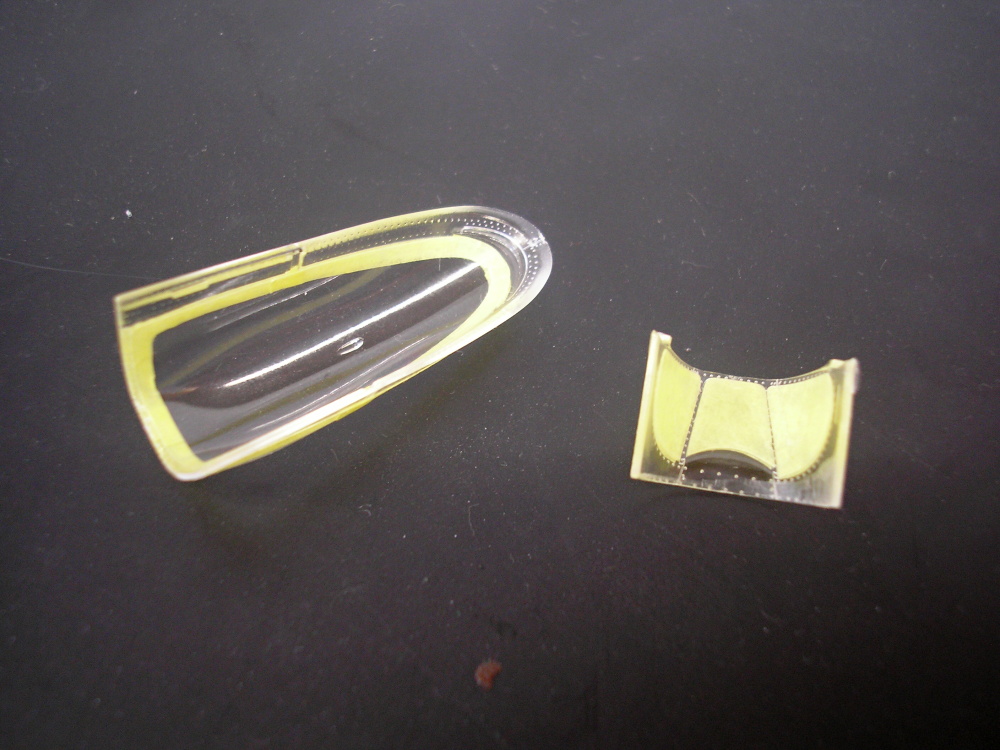 U dílů náběžných hran křídel s výstřelnými otvory bylo zapotřebí vložit do nich kousky plastu a tím je rozepřít, protože byli užší než křídlo samotné.