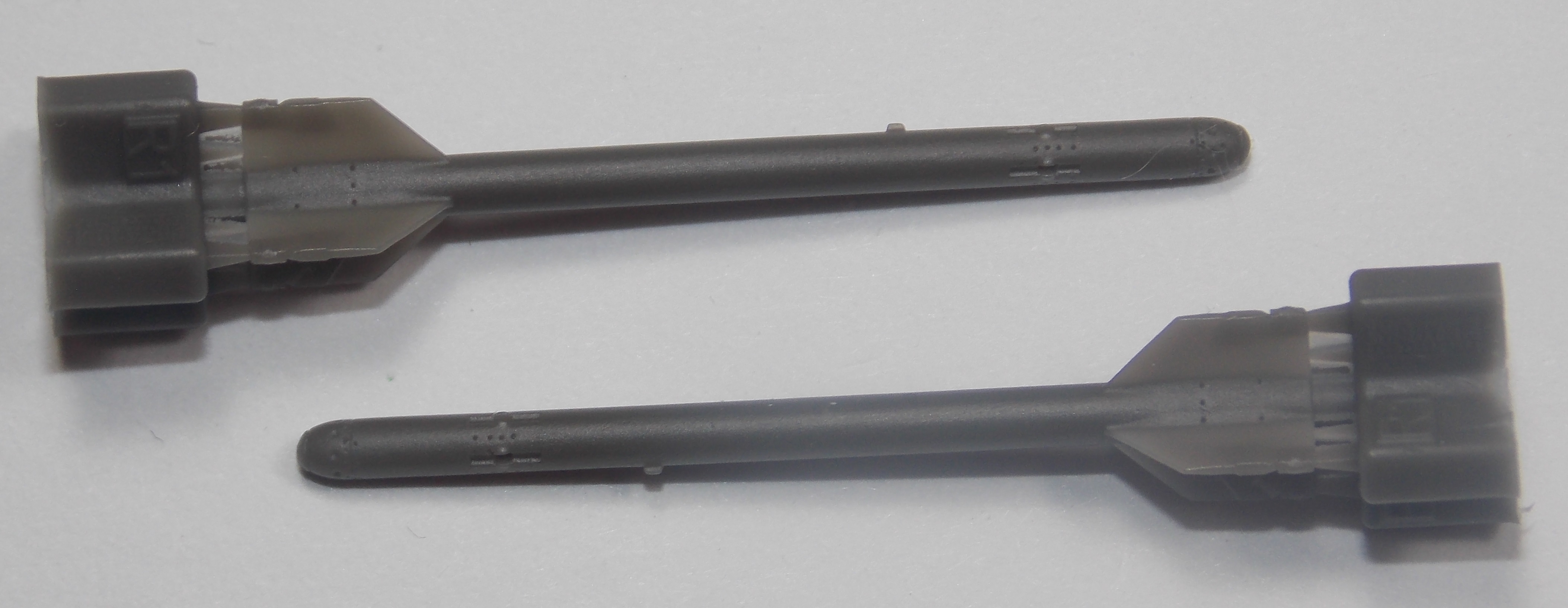 Zda si modelář přidá práci a použije raketu s krytem či ne, nechám na Vás. Bude to Váš model, Vaše starost i radost. Já, volím variantu bojovou. Tedy jen vyříznout raketu a závěsník z nálitku, nabarvit. Nanést obtisky, lak a hurá na model.