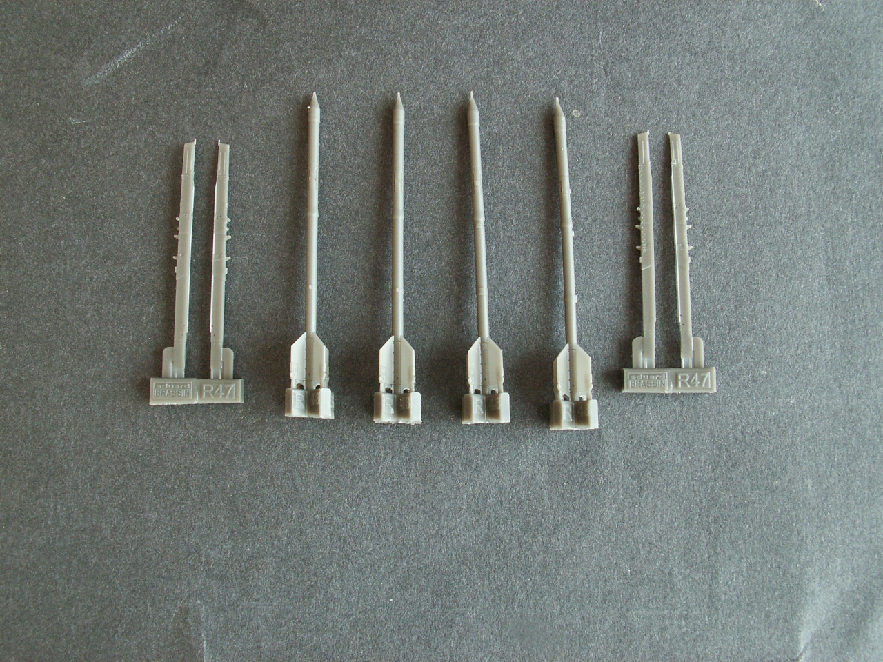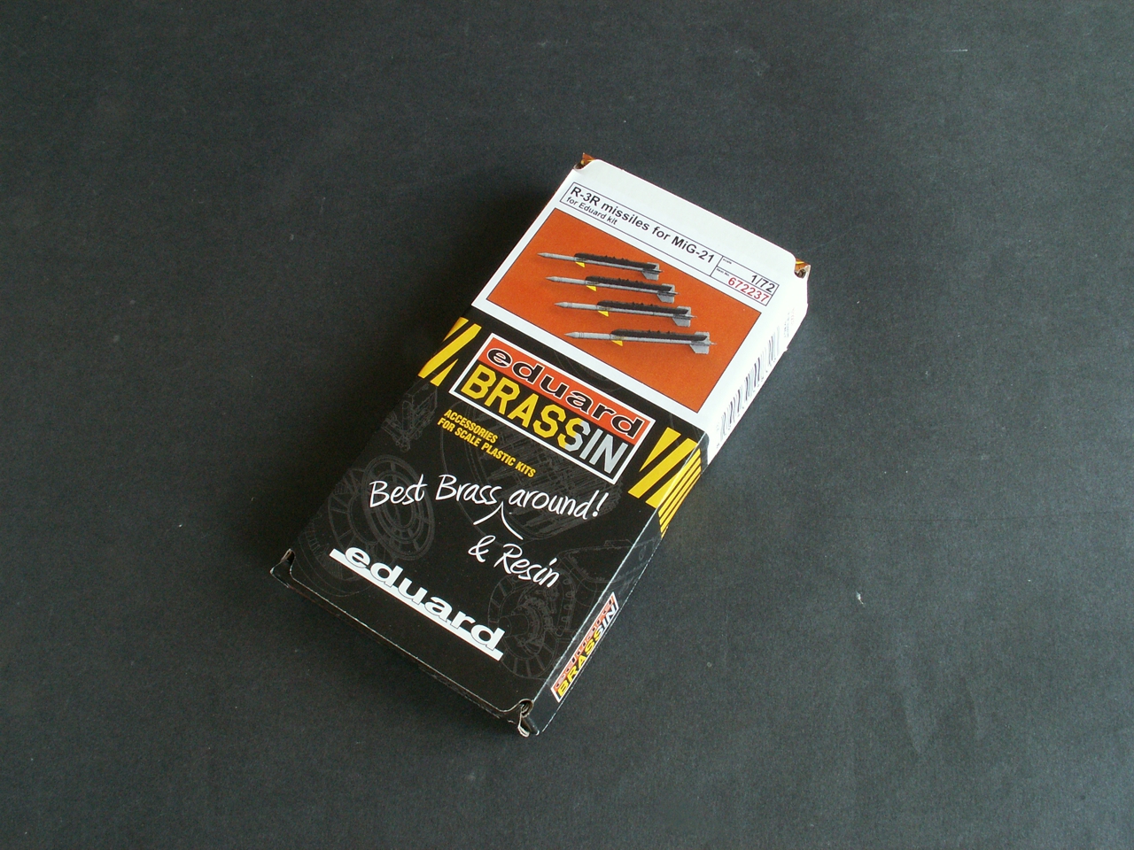 Z resinu odlévané, 72-krát zmenšené, v kartonu balené rakety R-3R od Eduardu...