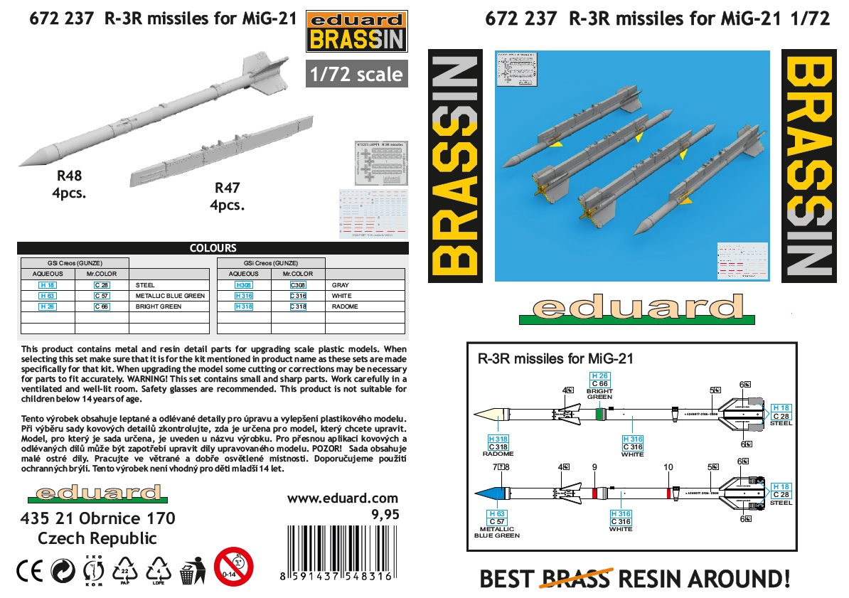 Rakety R-3R v měřítku 1/72 nám nyní tuzemský Eduard nabízí v řadě odlévaných doplňků Brassin.