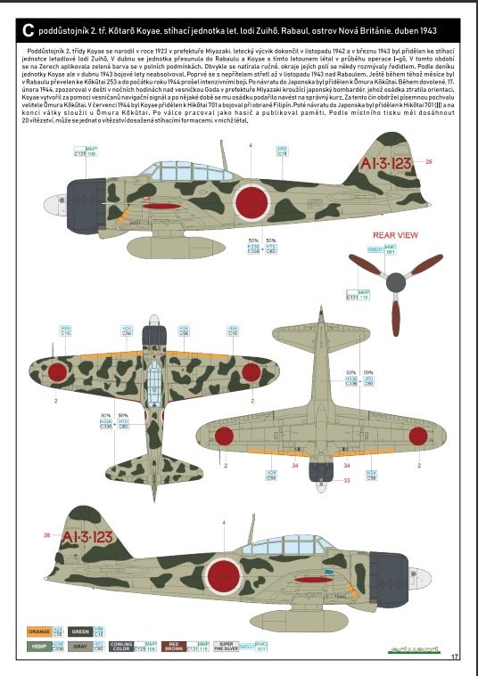 Tuhle stavebnici již mám postavenou a je to opravdu nádherná stavebnice. Výběr kamufláží je pro Zero "netypicky" pestrý. První limitka s názvem "TORA, TORA, TORA" byla jen o náletu na Pearl Harbor, takže kamufláže v "jedné" šedé. Tenhle ProfiPACK je už průřez různými akcemi.