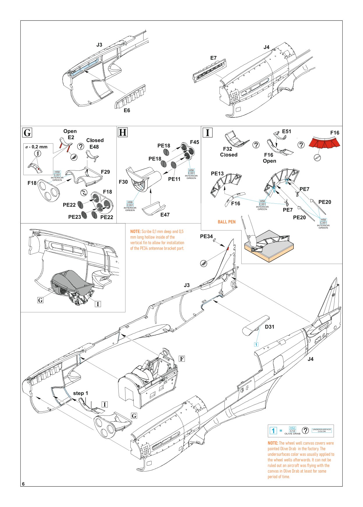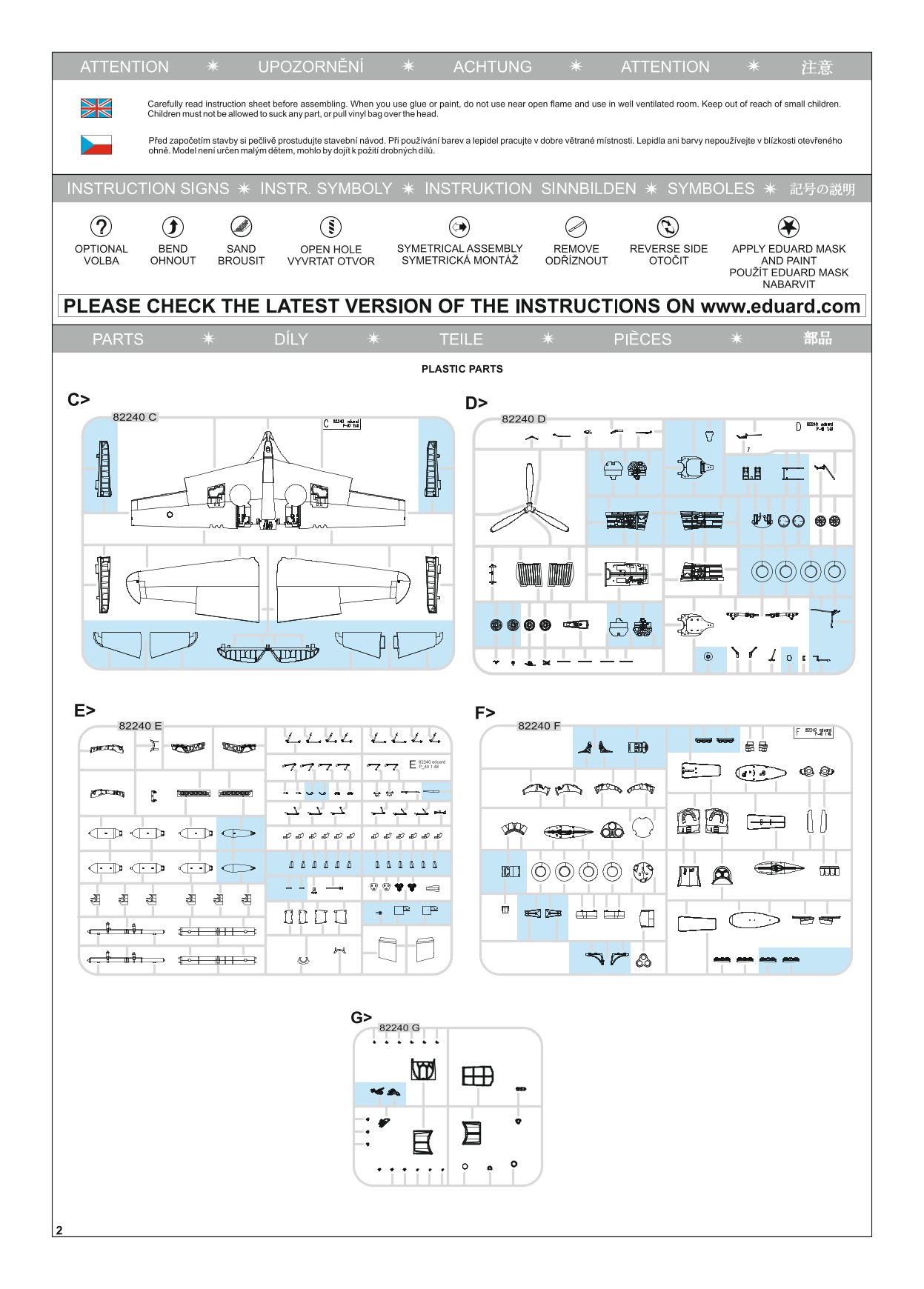 Návod je takový na jaký jsme si již od tohoto výrobce zvykli. Takže jen pro neznalé shrnu - nástřel dílů+ podbarvením znázorněné díly, které při stavbě nepoužijeme – tabulka barev - třináct stran stavebních kroků, jedna strana umístění stříkacích masek...