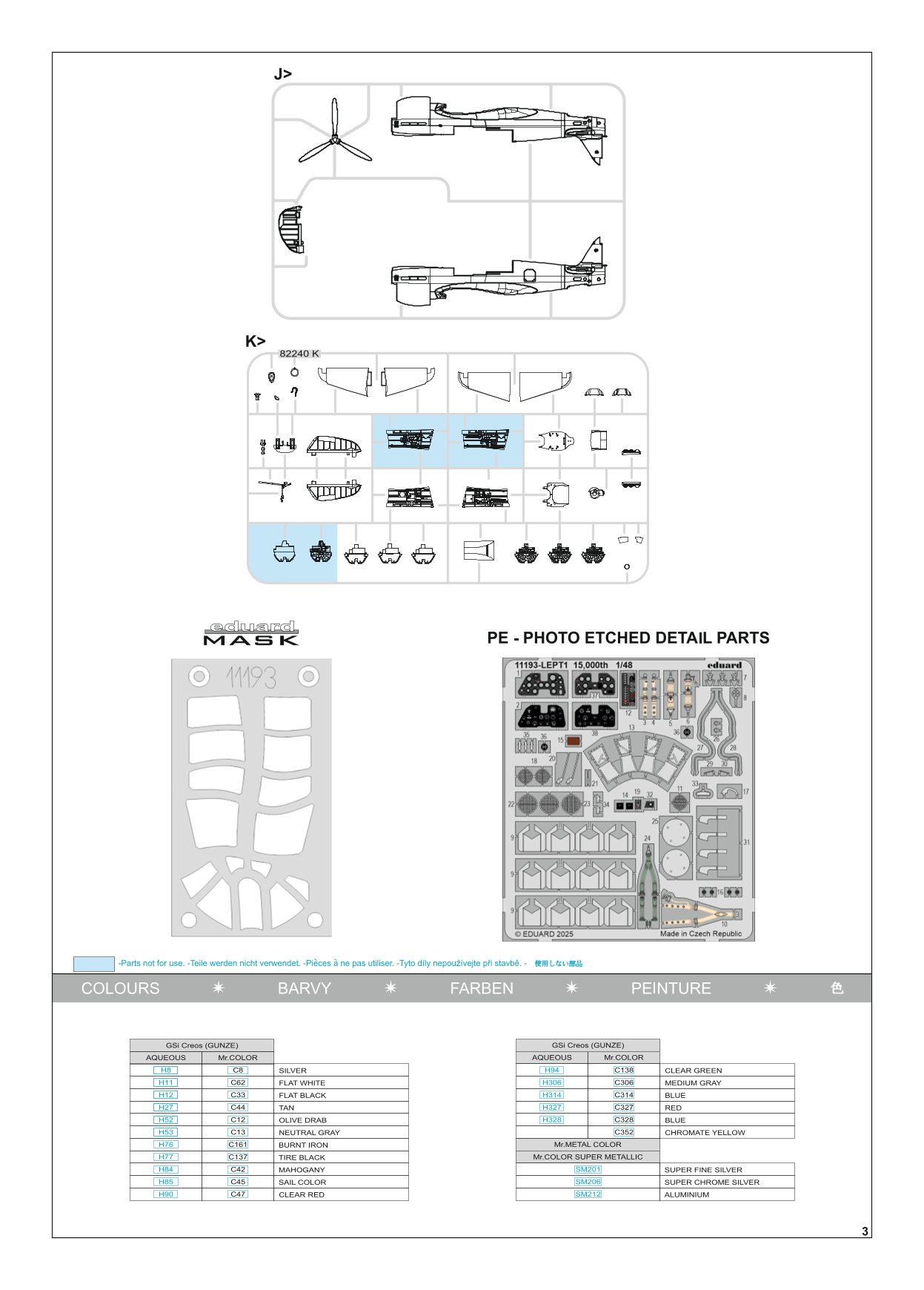 V planžetě s leptanými díly nalezneme dvě barevné varianty palubních desek, barevné poutací pásy, mřížky chladiče, lamely výstupu vzduchu z chladiče, kryty disků podvozkových kol, stabilizátory 500lb pum, zpětné zrcátko a mechanická mířidla.