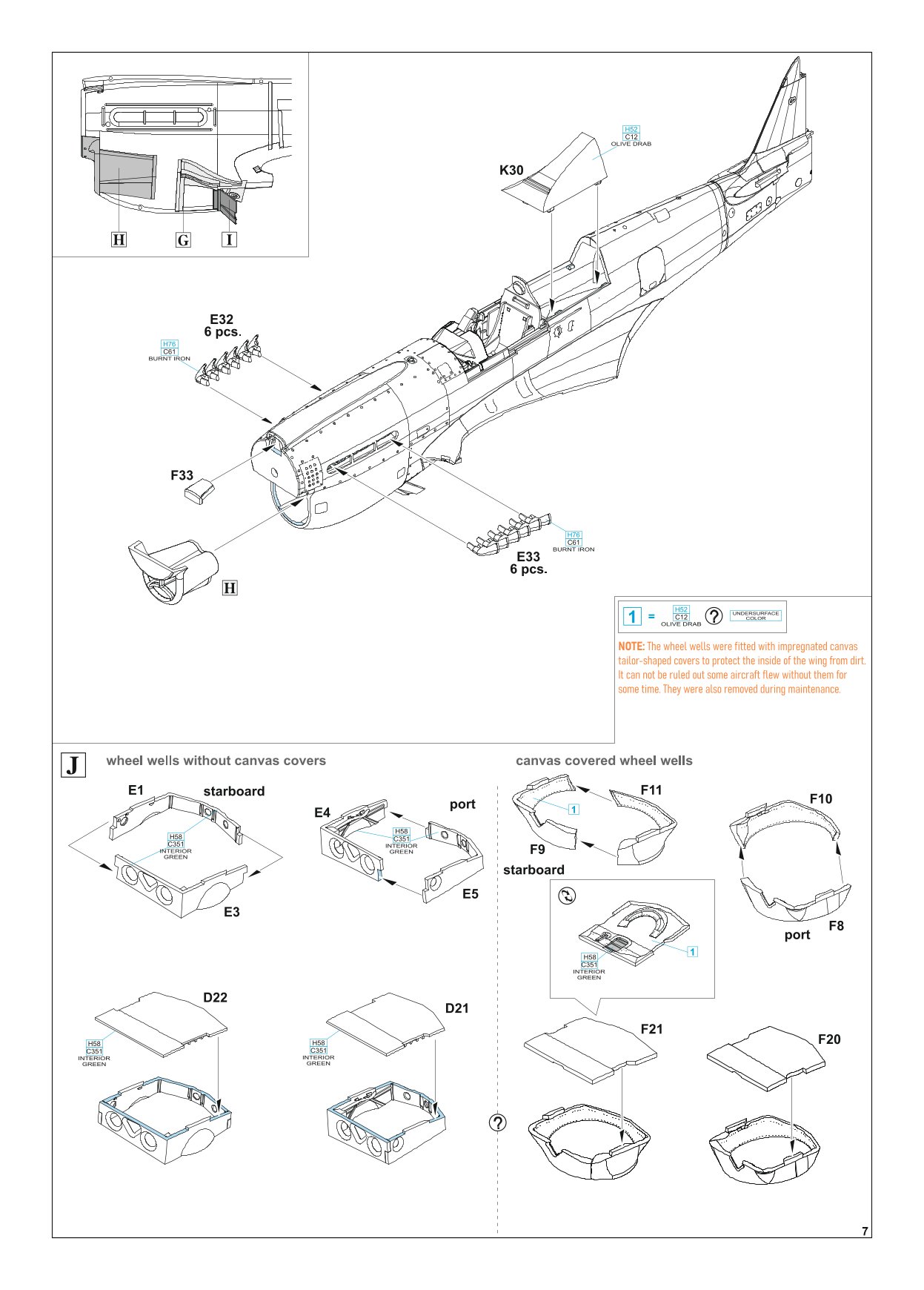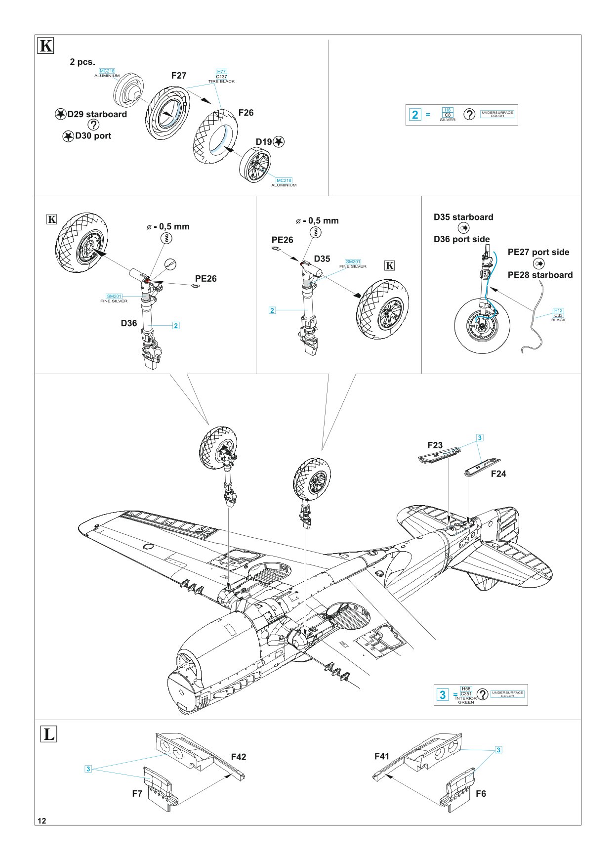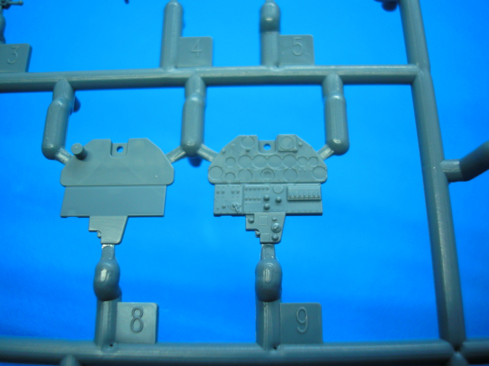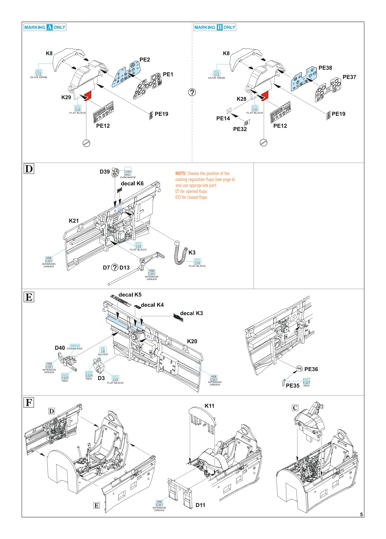 Rámeček K. Tento rámeček obsahuje díly stabilizátorů, výšková kormidla, palubní desky jak pro použití přístrojů z obtisku, tak pro použití dílů z leptané sady. Dále pancéřovou desku za sedačku pilota, opěrku hlavy, boční stěny pilotního prostoru, páku řízení a další drobné ovládací prvky do pilotního prostoru.