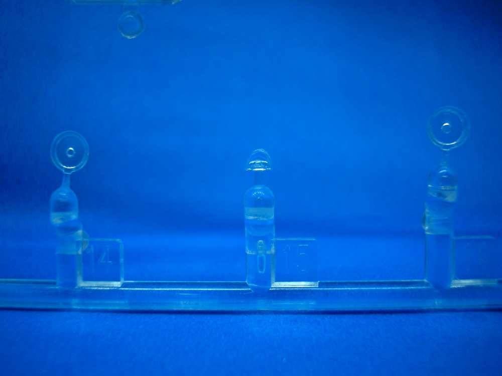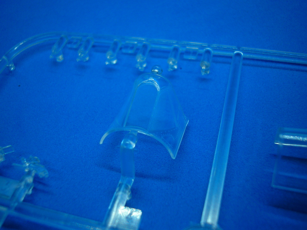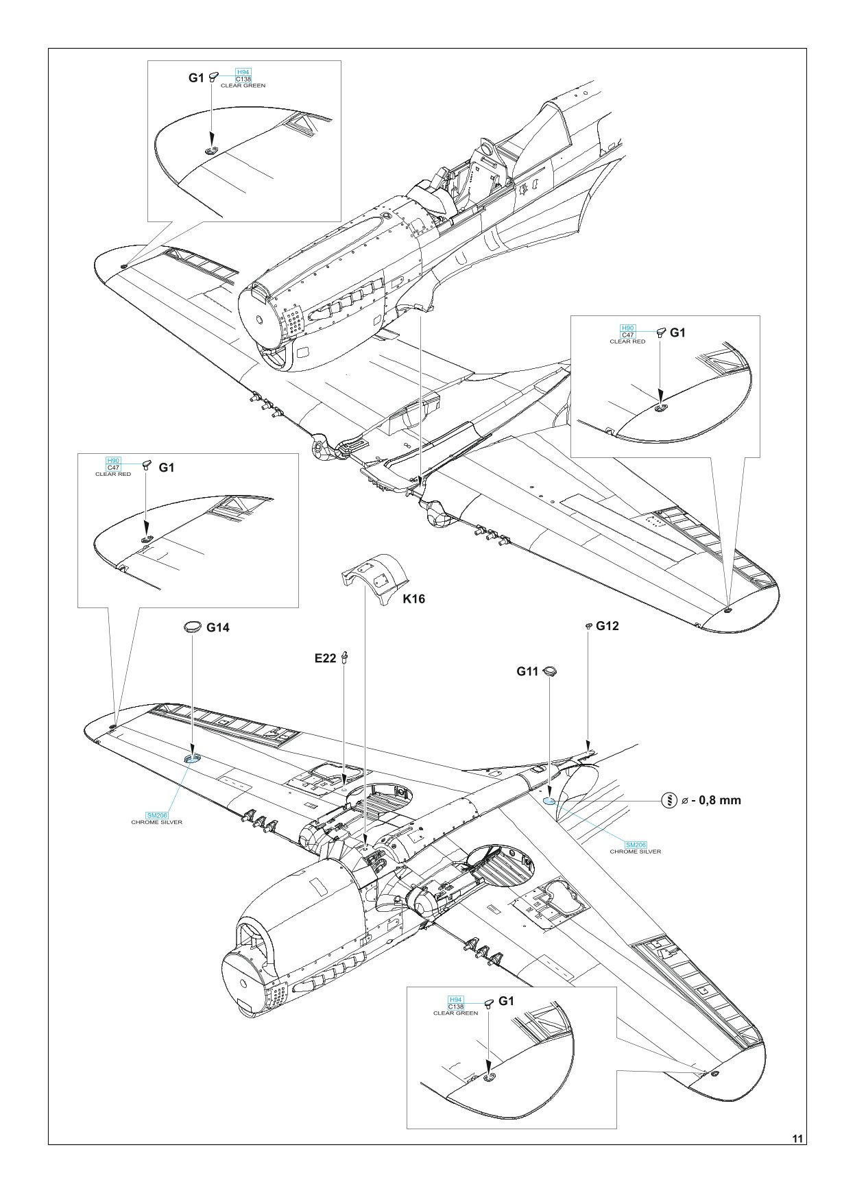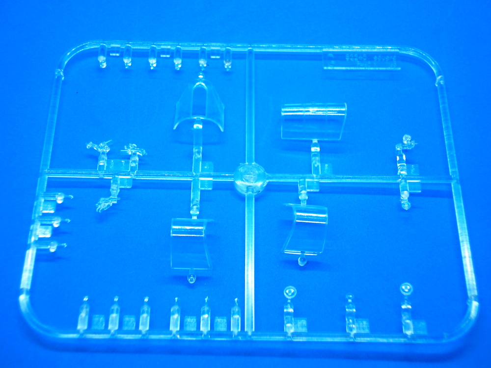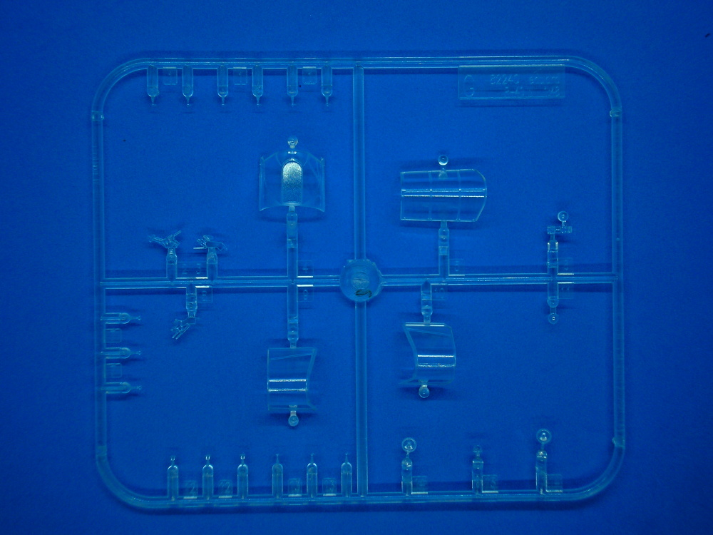 V rámečku s čirými díly s označením G najdeme větrný štítek, dva odsuvné překryty kabiny, kdy si zvolíme, zda kabinu necháme zavřenou, nebo otevřenou, zadní část zasklení kabiny, poziční světla, skla světlometů a zaměřovač.