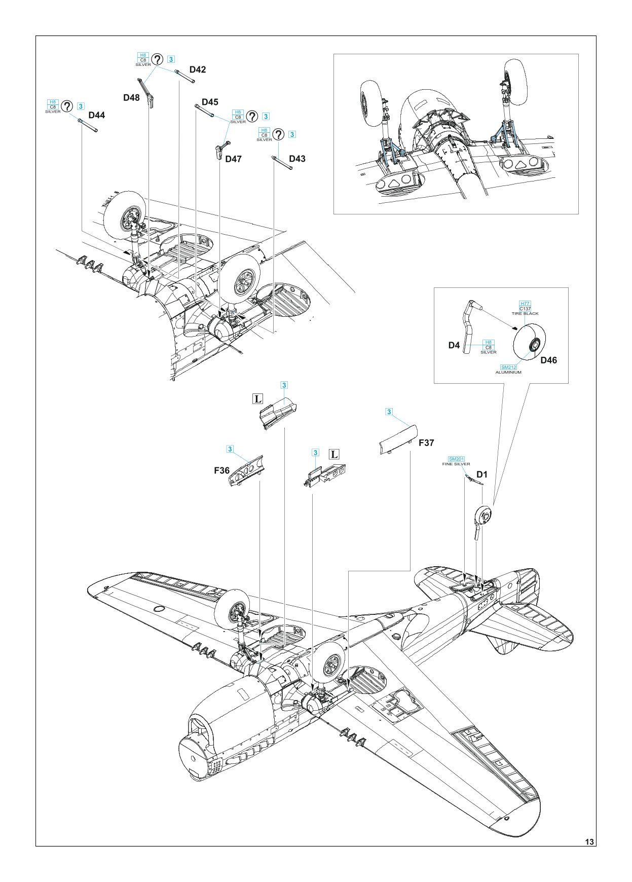Součástí rámečku D, jsou vrtule, palubní desky, pancéřová deska za sedačku pilota, podlaha pilotního prostoru, boční stěny pilotního prostoru, některé části ovládacích prvků do pilotního prostoru, stropnice podvozkových šachet, podvozkové nohy, pneu podvozkových kol a ostruhové kolo.