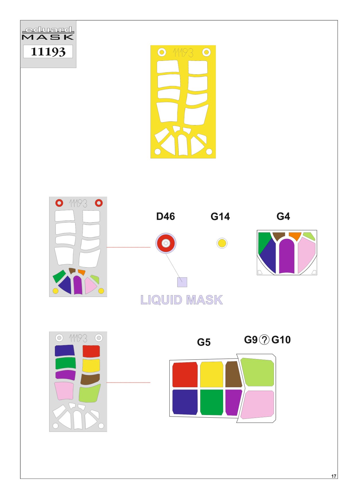 Aršík z kabuki pásky obsahuje stříkací masky pro vymaskování čirých částí pilotního prostoru, světlometů na spodní části křídla.