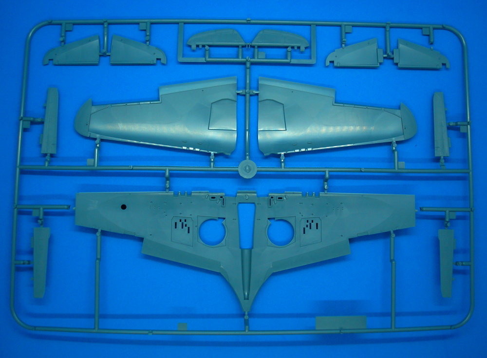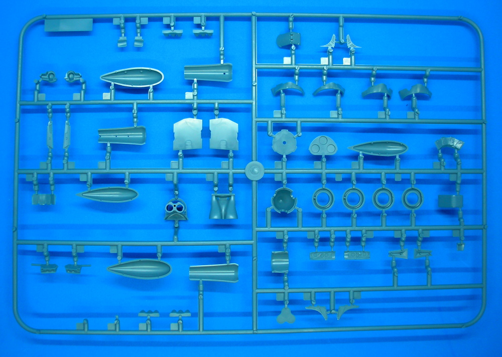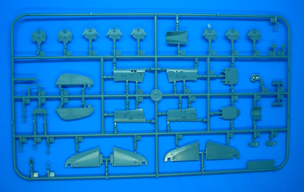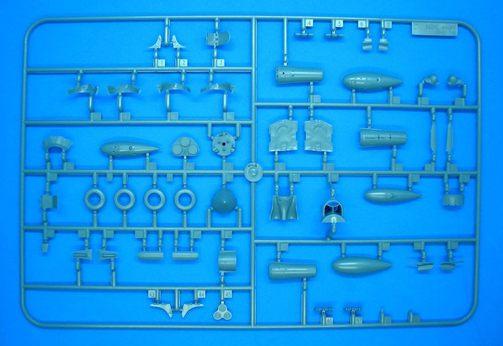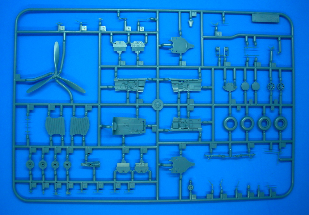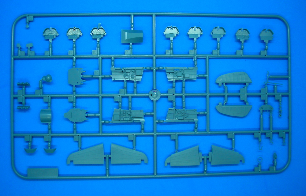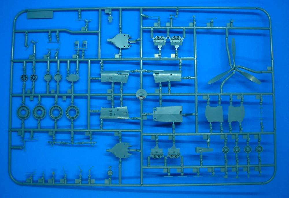 Rámeček F obsahuje díly sedačky pilota, anténní sloupek, křídelní pumové závěsníky, lamely výstupu vzduch z chladiče, stěny a stěny podvozkových šachet s plátěným opláštěním. Dále vrtulový kužel, pneu podvozkových kol, dva druhy přídavných nádrží, díly sestavy vstupu vzduchu k chladiči, chladič, kryty podvozkových noh, tři díly spodní středové části trupu, které si dle návodu zvolíme podle toho, co budeme chtít pod trup zavěsit.
