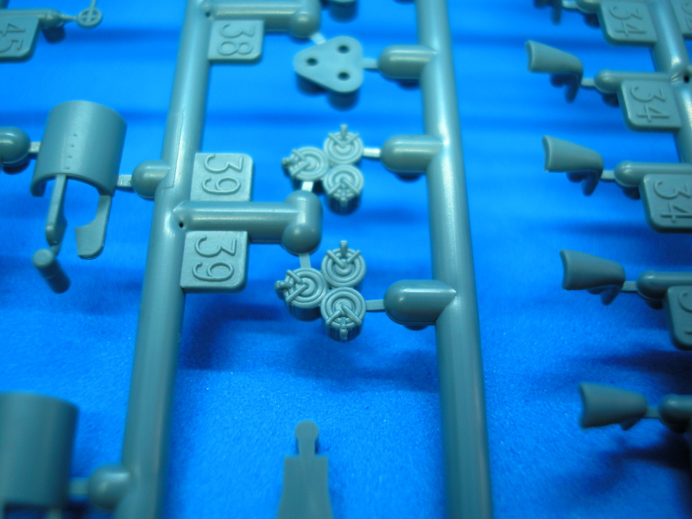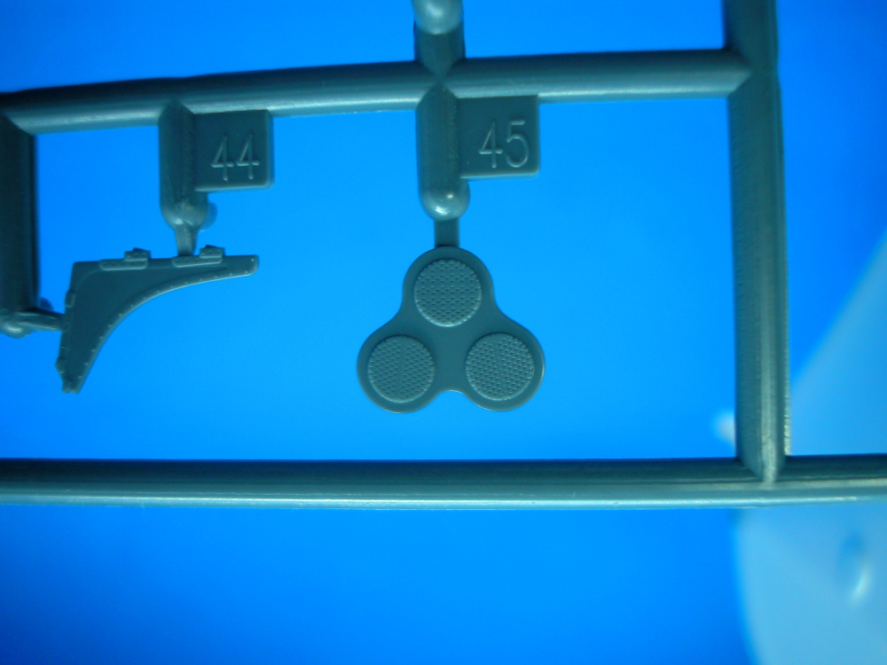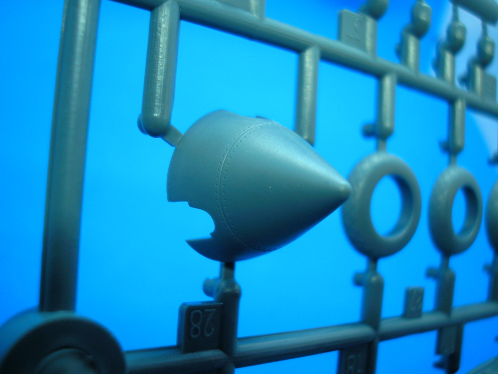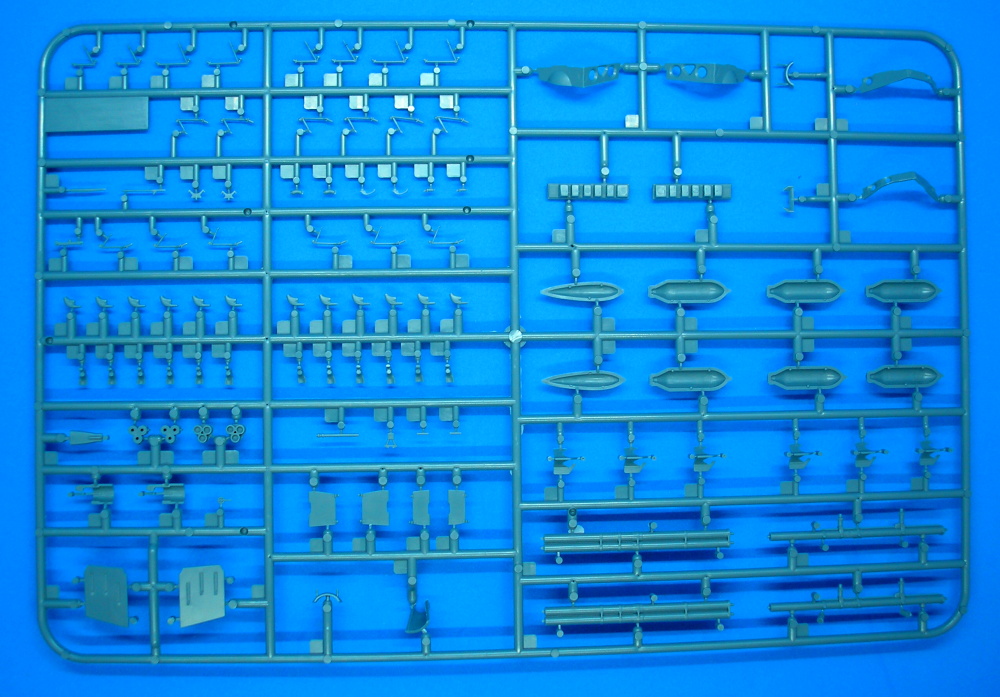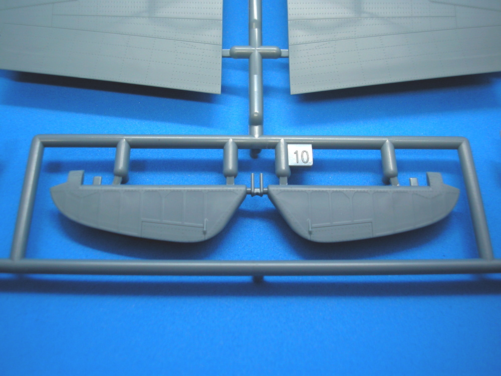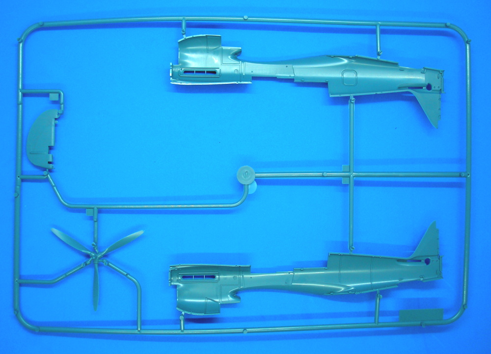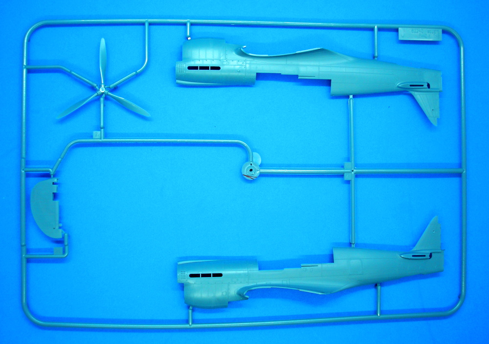 Rámeček F obsahuje díly sedačky pilota, anténní sloupek, křídelní pumové závěsníky, lamely výstupu vzduch z chladiče, stěny a stěny podvozkových šachet s plátěným opláštěním. Dále vrtulový kužel, pneu podvozkových kol, dva druhy přídavných nádrží, díly sestavy vstupu vzduchu k chladiči, chladič, kryty podvozkových noh, tři díly spodní středové části trupu, které si dle návodu zvolíme podle toho, co budeme chtít pod trup zavěsit.