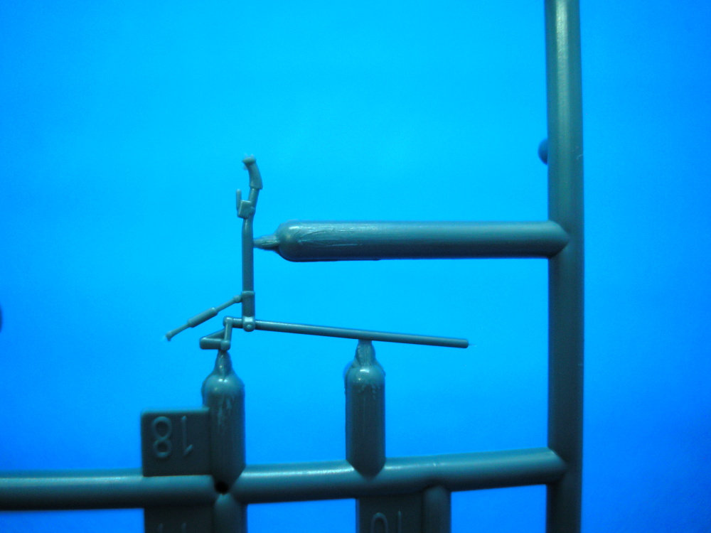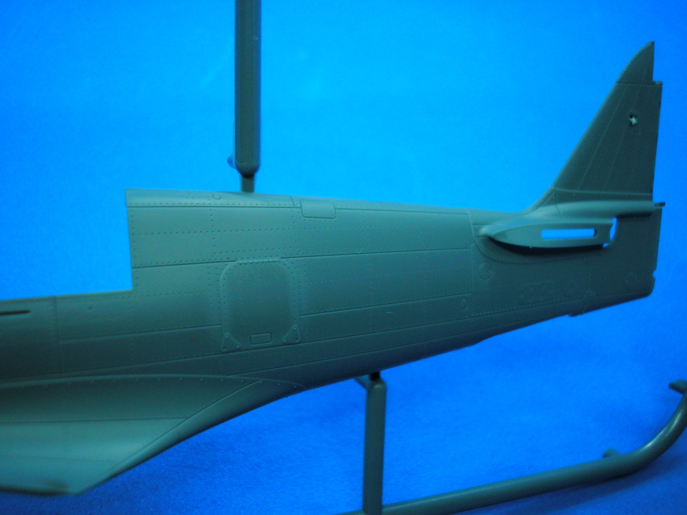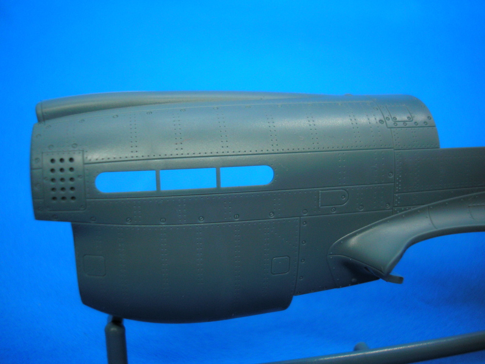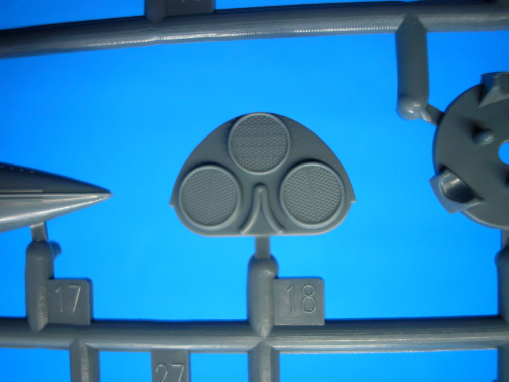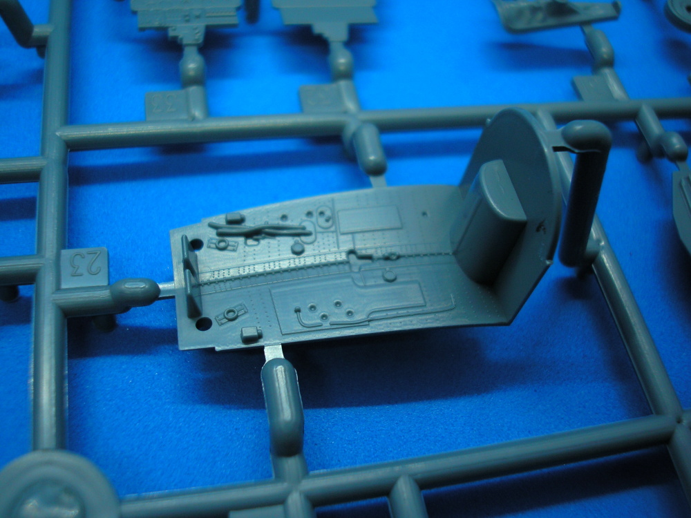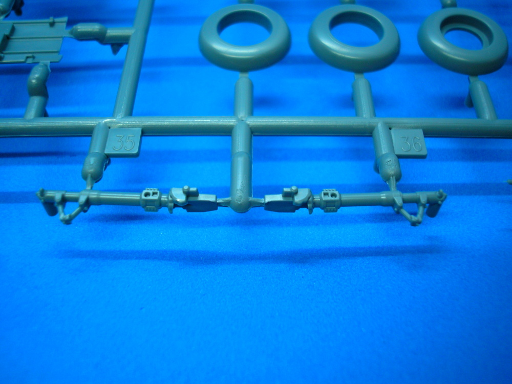 Rámeček F obsahuje díly sedačky pilota, anténní sloupek, křídelní pumové závěsníky, lamely výstupu vzduch z chladiče, stěny a stěny podvozkových šachet s plátěným opláštěním. Dále vrtulový kužel, pneu podvozkových kol, dva druhy přídavných nádrží, díly sestavy vstupu vzduchu k chladiči, chladič, kryty podvozkových noh, tři díly spodní středové části trupu, které si dle návodu zvolíme podle toho, co budeme chtít pod trup zavěsit.