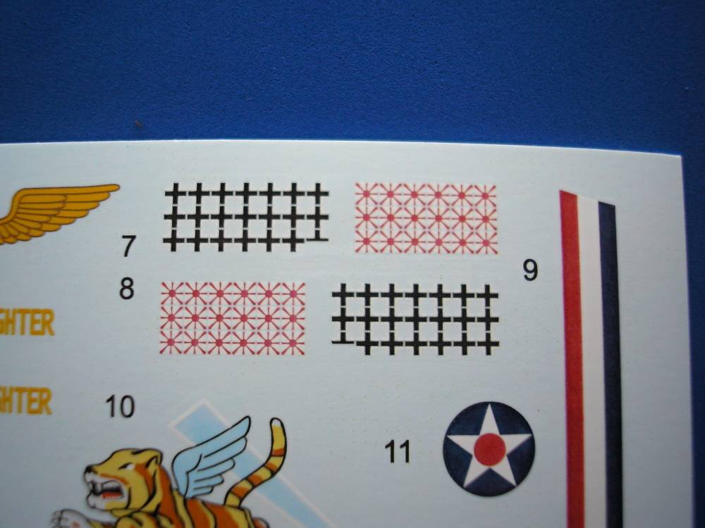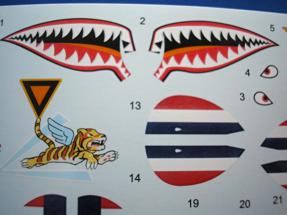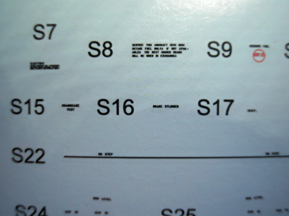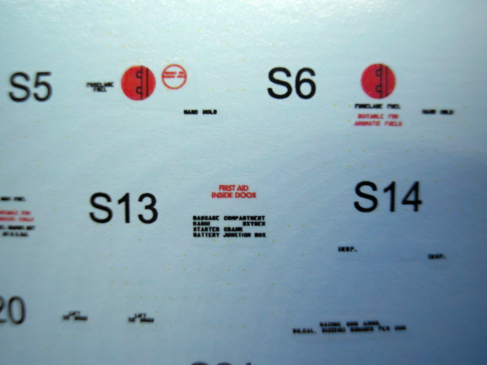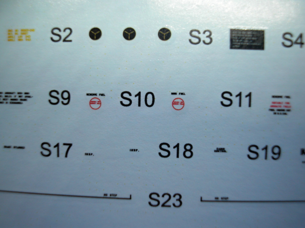 Obtiskové aršíky nesou logo výrobce. První, větší aršík obsahuje veškeré obtisky markingu pro oba stroje a také obtisky přístrojů na palubní desky. Druhý, menší obsahuje popisky, jejich umístění najdeme na poslední straně stavebního návodu.