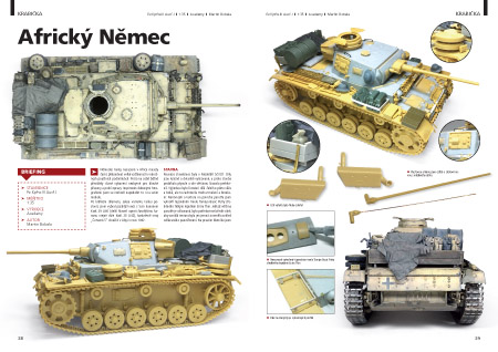 Německé tanky nasazené v Africe musely často překonávat velké vzdálenosti v náročných pouštních podmínkách. Proto na sobě běžně převážely různé vybavení nezbytné pro dlouhé přesuny a polní opravy. Inspirován dobovými fotografiemi jsem se rozhodl napodobit to i na svém modelu. Po krátkém dilematu, jakou variantu tanku postavit, jsem vybral pozdější verzi s 5cm kanonem KwK 39 L/60 (delší hlaveň oproti časnějšímu kanonu stejné ráže KwK 38 L/42), konkrétně stroj „Červená 5“ sloužící v Libyi v roce 1942.